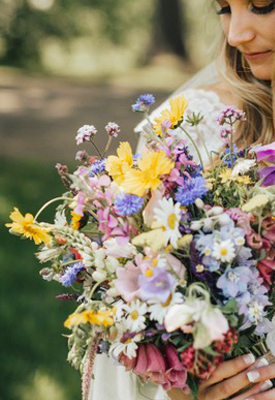 The look is quintessentially American. The just-gathered style carries over to floral crowns, garlands, bouquets, and centerpieces as more brides are choosing naturalistic flowers that appear freshly picked from a meadow or forest, combined with cutting-garden favorites.