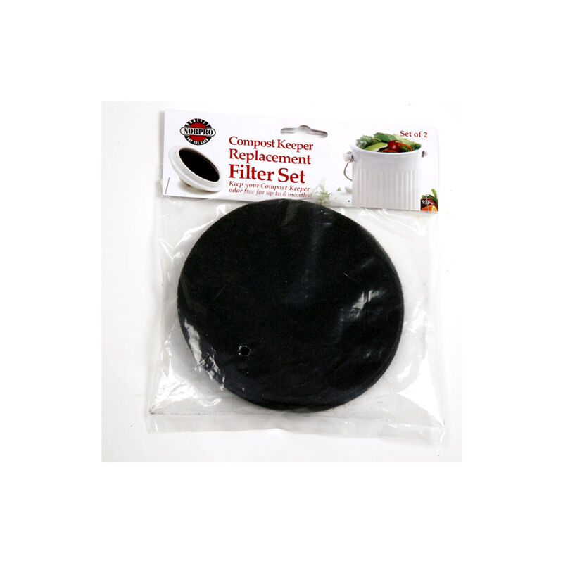 Should be changed approximately every 6 months, depending on use, heat, and humidity; do not wash and reuse. Includes two 5 1/2" diameter round filters. Compatible with our ceramic Compost Keepers, #7096 and #7097.